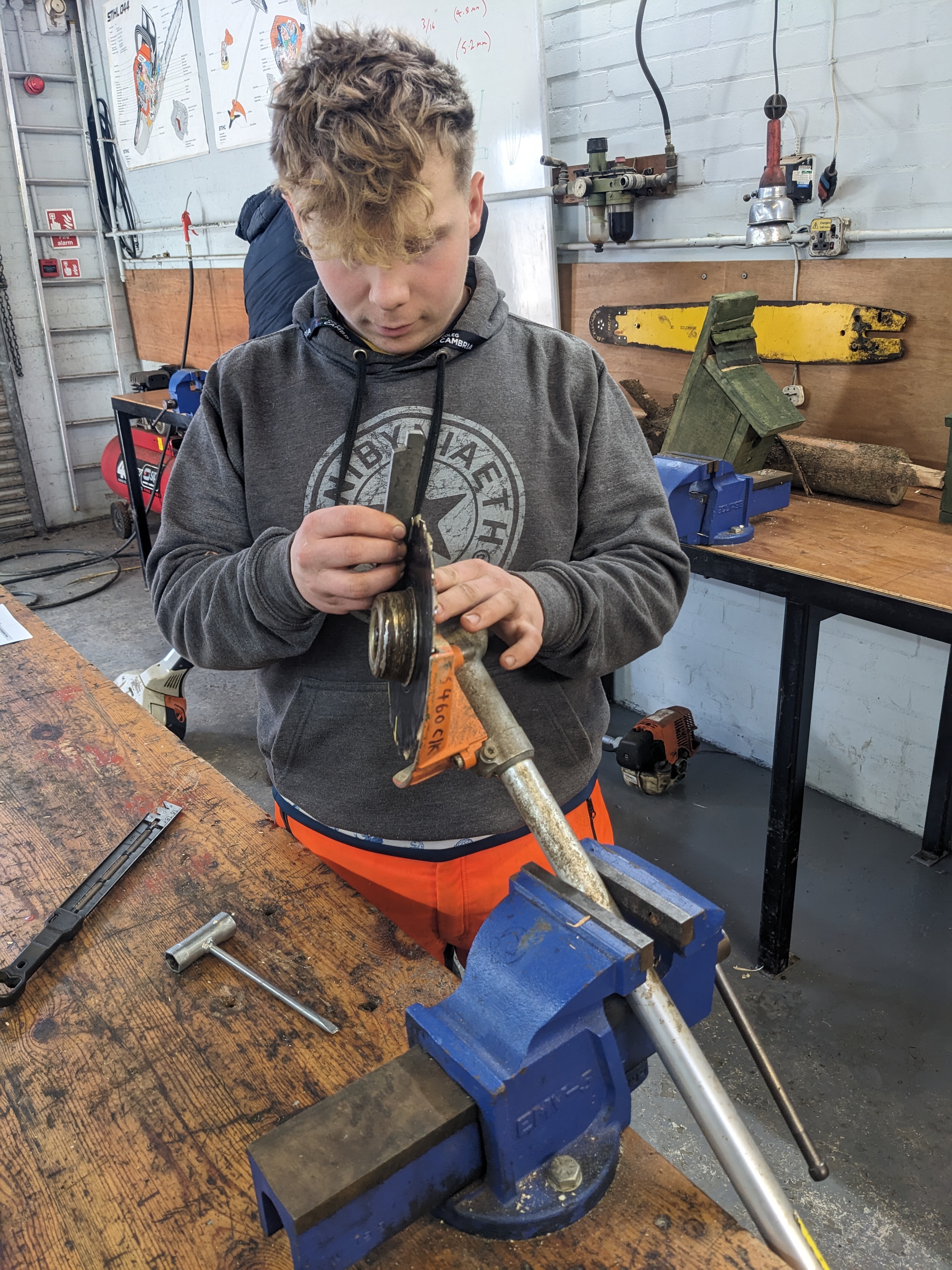 Photo caption: Foresight Sustainable Forestry Skills Training Programme training session with chainsaws at SRUC.